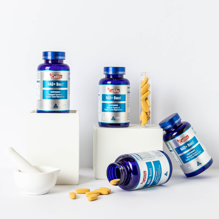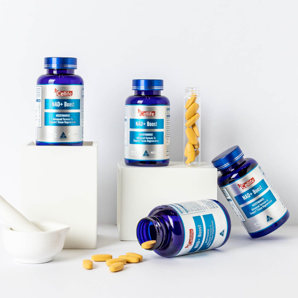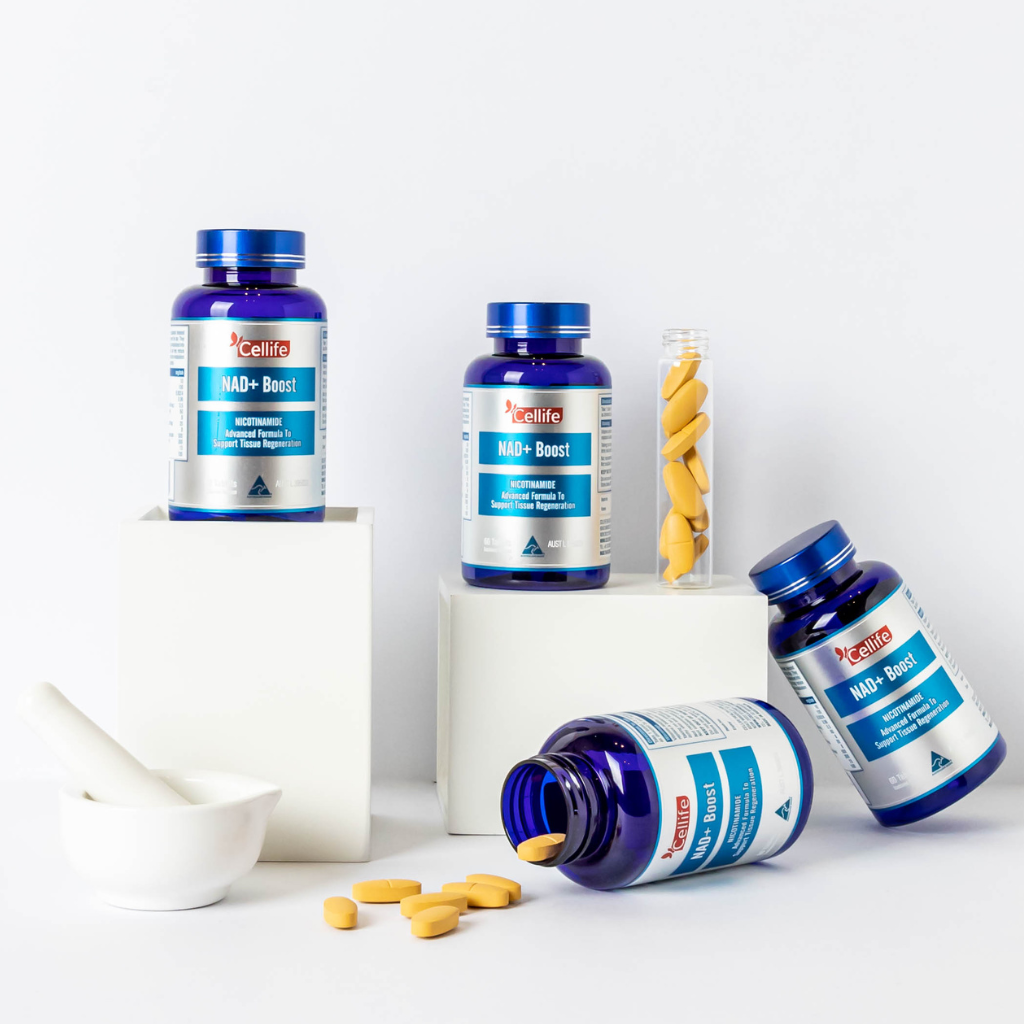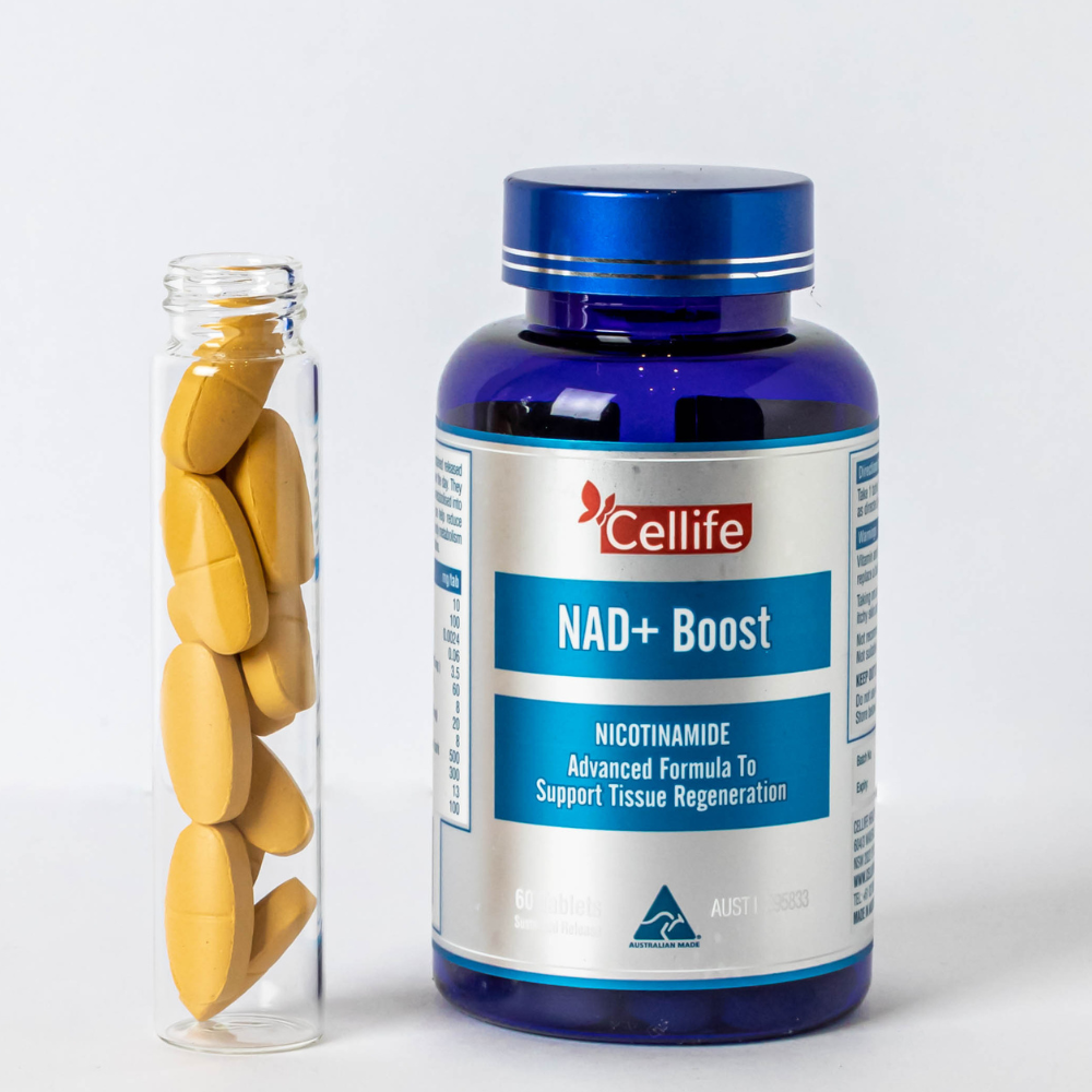 Cellife NAD + Boost, is a sustained release complex containing Nicotinic acid and Nicotinamide. These nutrients are precursors to NAD+ which plays an essential role in energy metabolism and DNA repair.